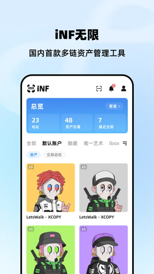 iNF无限是一款服务于中国Web3生态的多链资产管理应用,支持国内合规区块链Conflux树图链以及BSN联盟链。全面适配中国用户使用习惯,用户可跨平台管理链上资产,无门槛进入Web3。Web3统一授权服务为元宇宙和Web3开发者提供易于集成、合规、安全的统一授权解决方案。