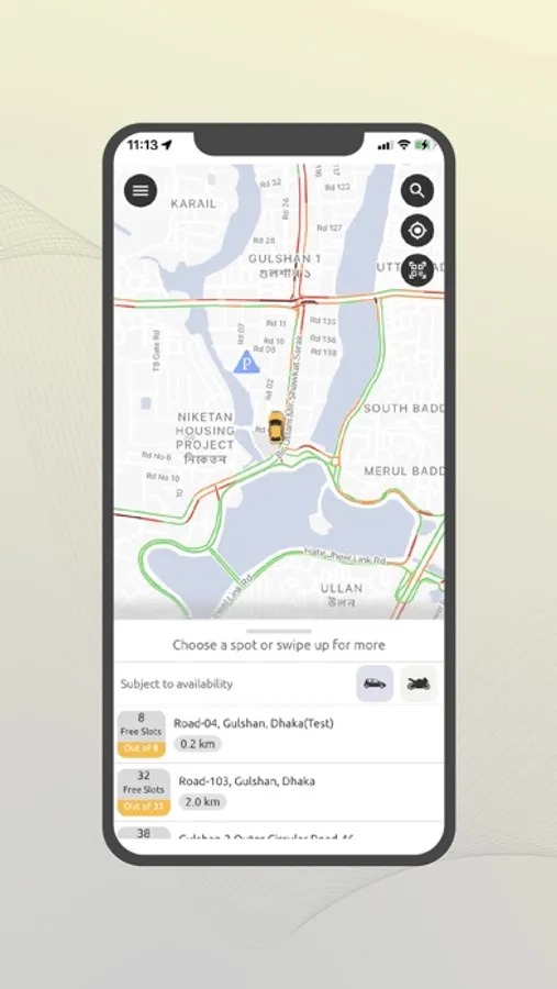 We have designed this app in a way where you will not have to search a parking spot all the way by your vehicle. The app will show the parking spaces around you that are empty and available through a map and you can easily go to your desired parking place through Google Map by looking in the direction.