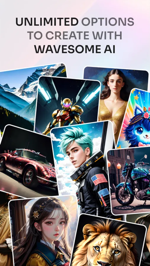Just ask Wavesome AI to create what you imagine! Simply type in prompts like: ”Kitty with bow tie”, “flower garden”, “futuristic car”, or anything you would like to use in an image. Finally, the search for stock photos is over!