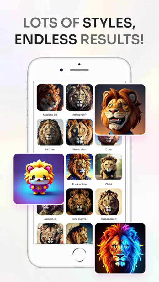 Add a style choosing from Stunning, Epic, Cute, Kawaii, Steampunk, Fantasy, Anime, Biopunk and a lot more! There’s a rich collection of cool styles in-app, you can’t get bored of.