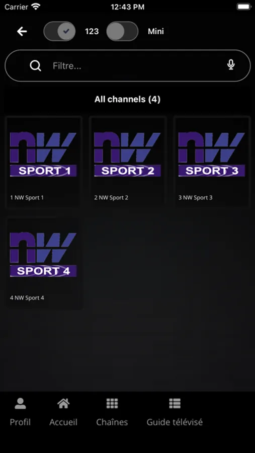 L'application New World Sport donne accès aux chaînes sportives suivantes New World TV Group: