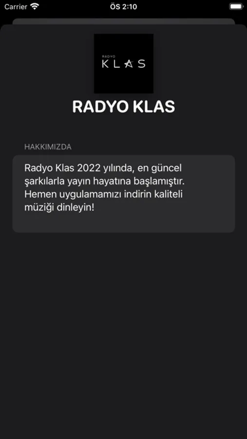 Radyo Klas 2022 yılında, en güncel şarkılarla yayın hayatına başlamıştır.