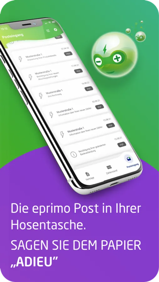 • Die eprimo Post in Ihrer Hosentasche. Sagen Sie Papier "adieu"! In der eprimo App haben Sie ein übersichtliches Postfach, in dem alle Ihre wichtigen Dokumente zu finden sind.