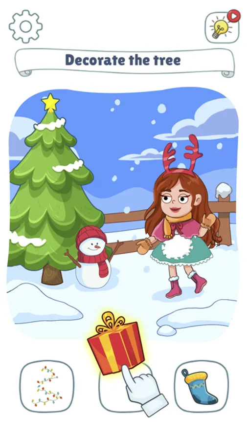 When feeling really stuck, you can click on the light bulb for a hint