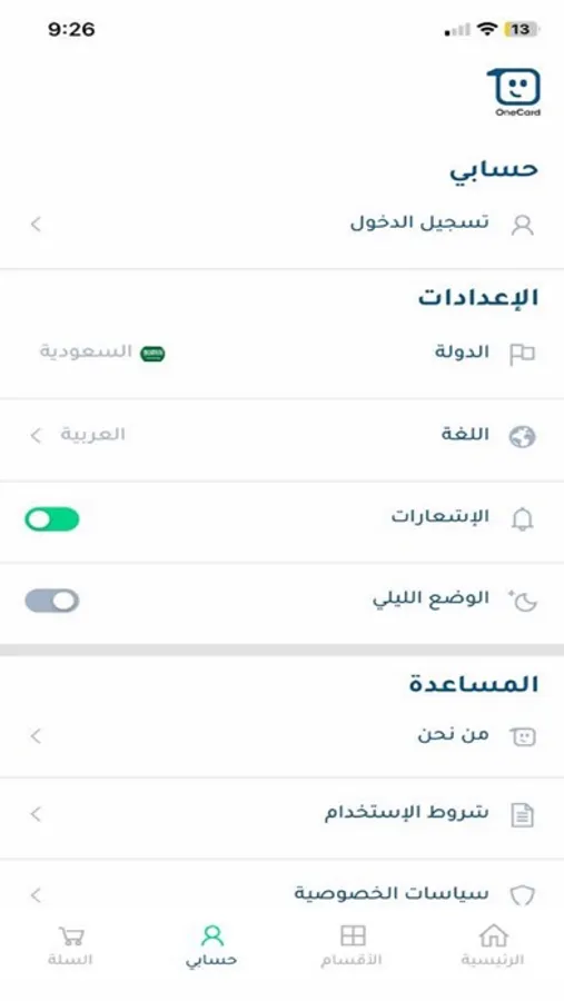 تطبيق ون كارد يمكّنك من الدخول لحساب ون كارد الخاص بك بسهولة ويسر، والتسوق الآمن على الموقع من خلال أكثر من 8000 منتج، أيضاً يمكنك من القيام بعمليات البحث السريع عن منتجاتك المفضلة في الموقع.