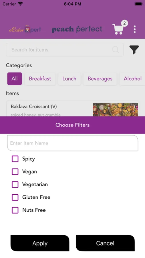 The eCaterXpert App is to order food online from the Caterers and Restaurants and get it delivered. The application provides a sophisticated set of features allowing user to select items from CaterXpert™ database, pay online and then submits the order. The submitted orders will be managed and processed through CaterXpertLite application.