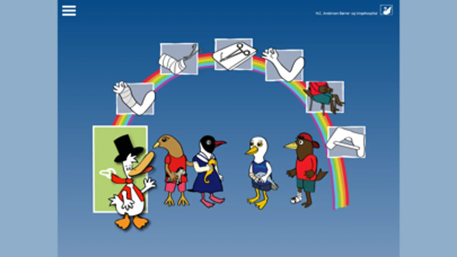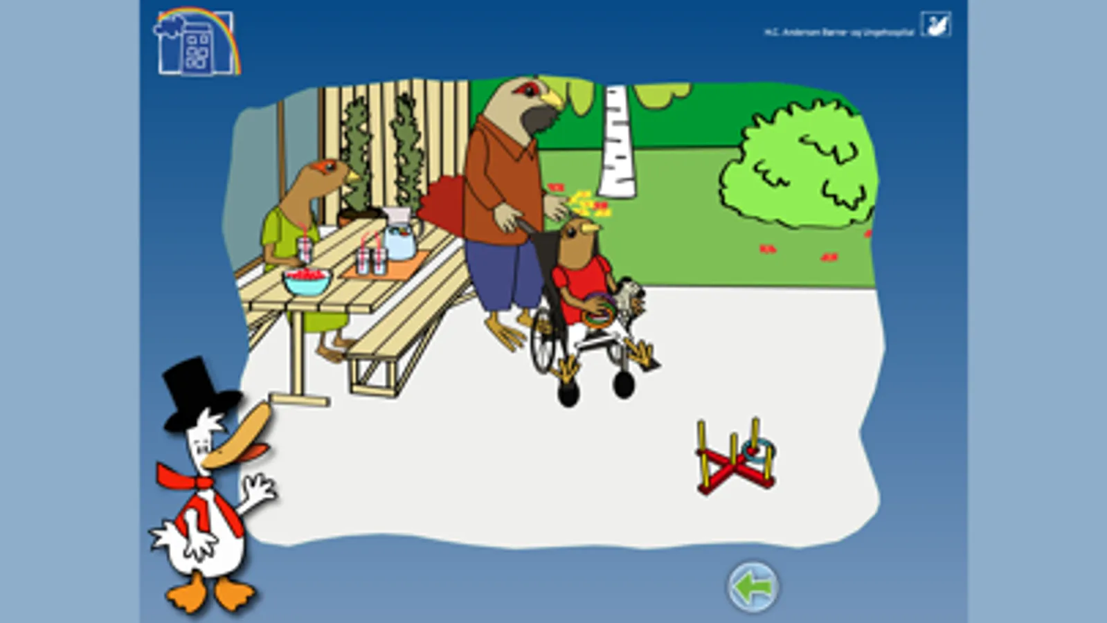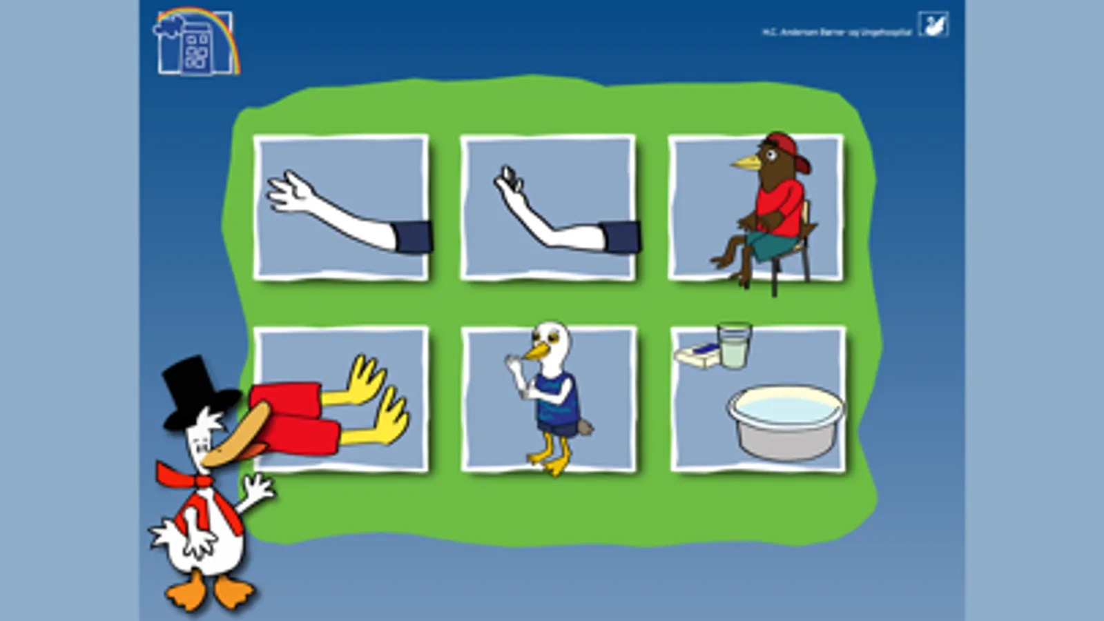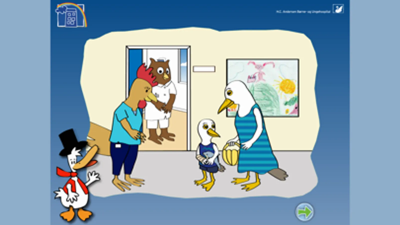 Børn i denne aldersgruppe lærer og erkender ved leg og konkret information. Indlagte børn kan hurtigt blive “fyldt op” med en masse information. Derfor er HC And bygget op af korte sekvenser i børnehøjde, så “nye” kan starte her.