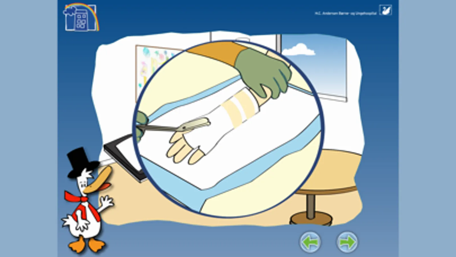 Historierne i HC And afspejler virkeligheden og de foreskrevne kliniske retningslinjer. Hospitalspersonale kan bruge dette materiale som et pædagogisk værktøj til at skabe en fælles forståelsesramme med barnet.
