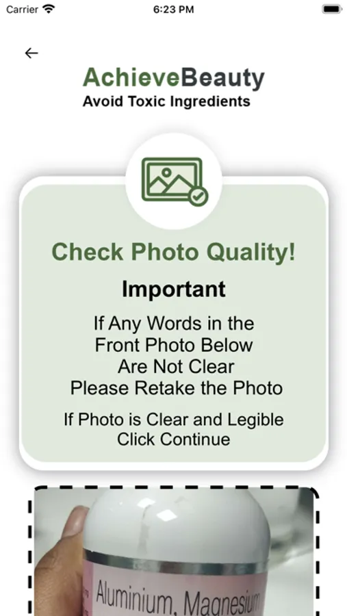 Achieve Beauty’s Product Photo App allows you to send us photos and the full ingredient list so that