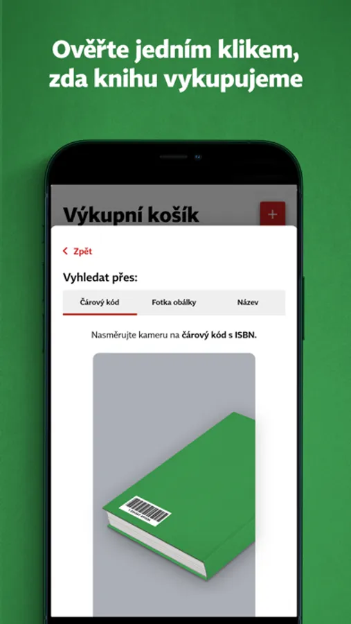 Rychlé ověření, zda knihu vykupujeme - nemusíte ručně vypisovat název knihy, stačí naskenovat čárový kód, nebo vyfotit její obálku