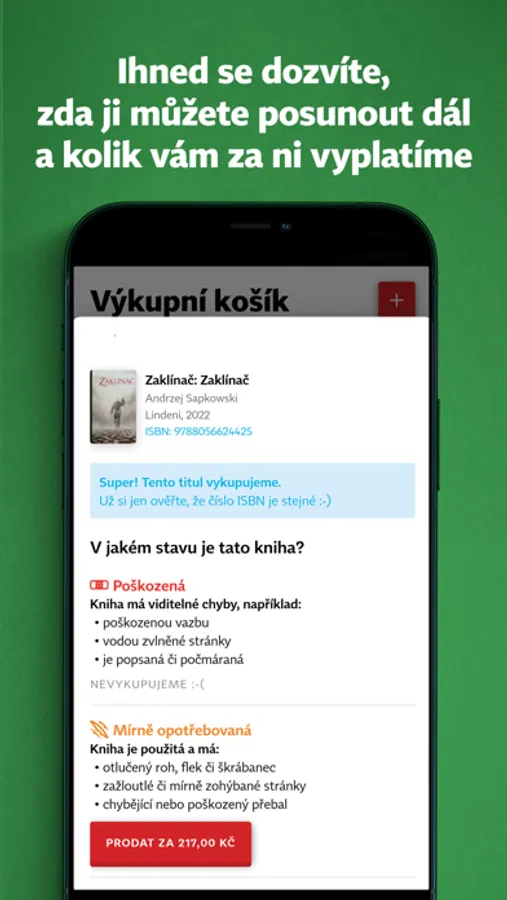 Získejte poukázku na nákup nových knih obratem za knihy, které už neplánujete číst! Stačí namířit fotoaparát na knihu a ihned se dozvíte, zda ji můžete posunout dál a kolik vám za ni vyplatíme.
