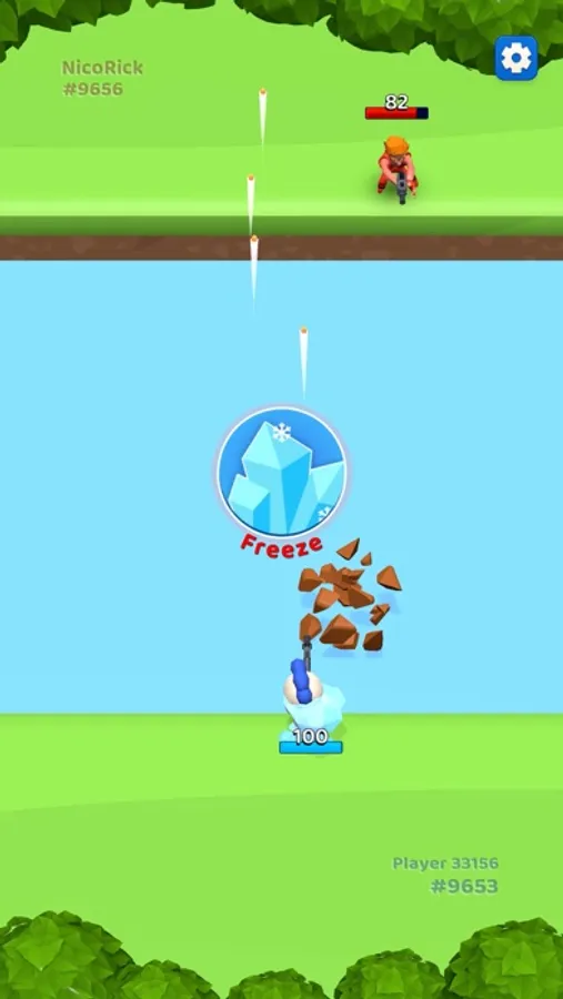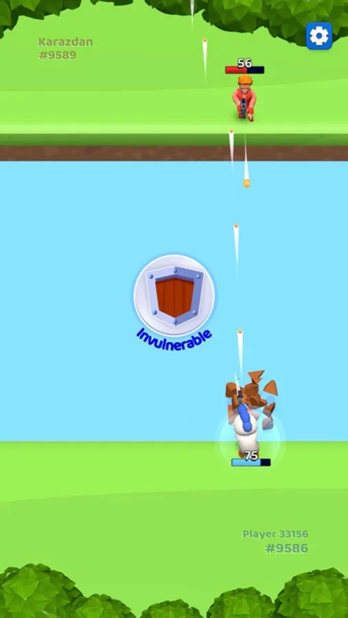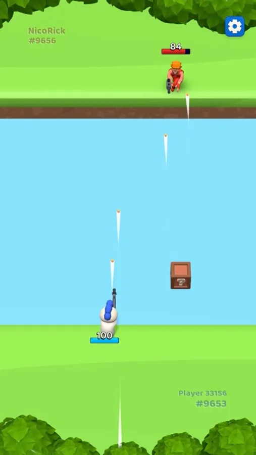 1 versus 1 Duello. Last man standing is the winner. Swipe right-left to avoid opponent bullets and fire at right time to eliminate him. Try to hit bonus boxes at river before your enemy and get advantage. Easy controls, very fun game mechanic. Totally free and no ads. Enjoy!