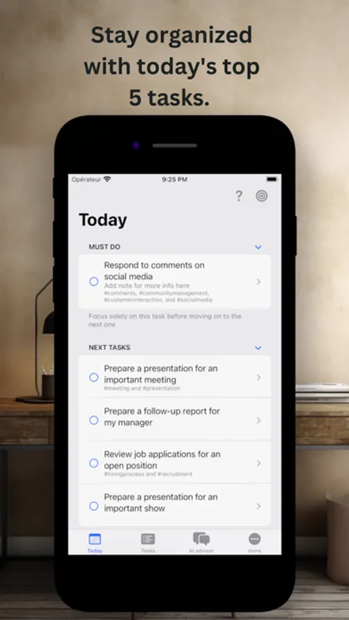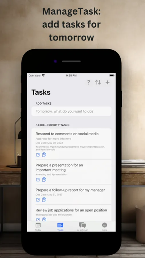 Engage with the AI advisor for tailored guidance on both professional and personal tasks. Enhance your productivity with expert insights and advice, all within your go-to task management app.