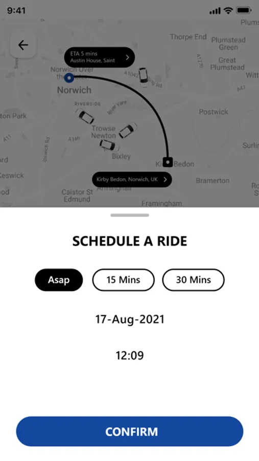 You can place the booking directly on our map, and see how many available cars there are nearby.