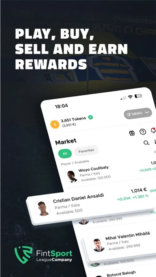 FintSport League Company is the application that allows you to exchange promises, professional players and legends of world football.