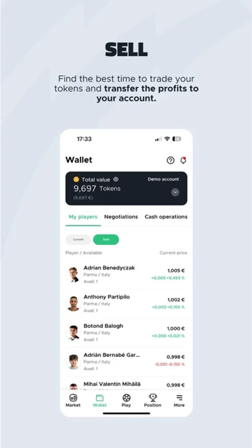 - Acquire the tokens associated with the player's rating. Each token is associated with its real valuation. Minutes played, goals, assists, yellow cards and expulsions; everything influences the valuation of each player.