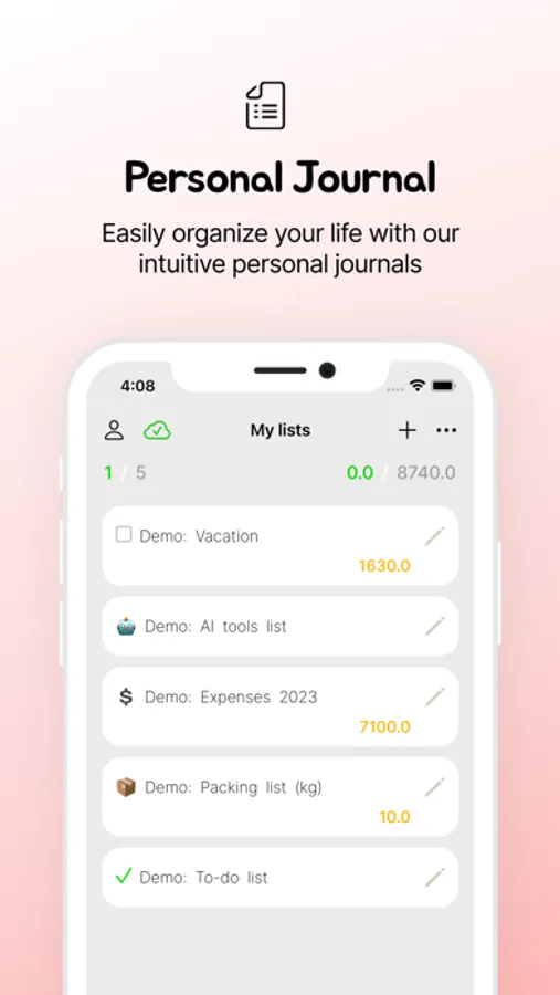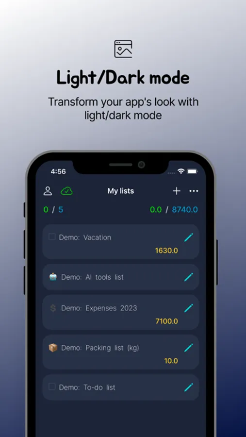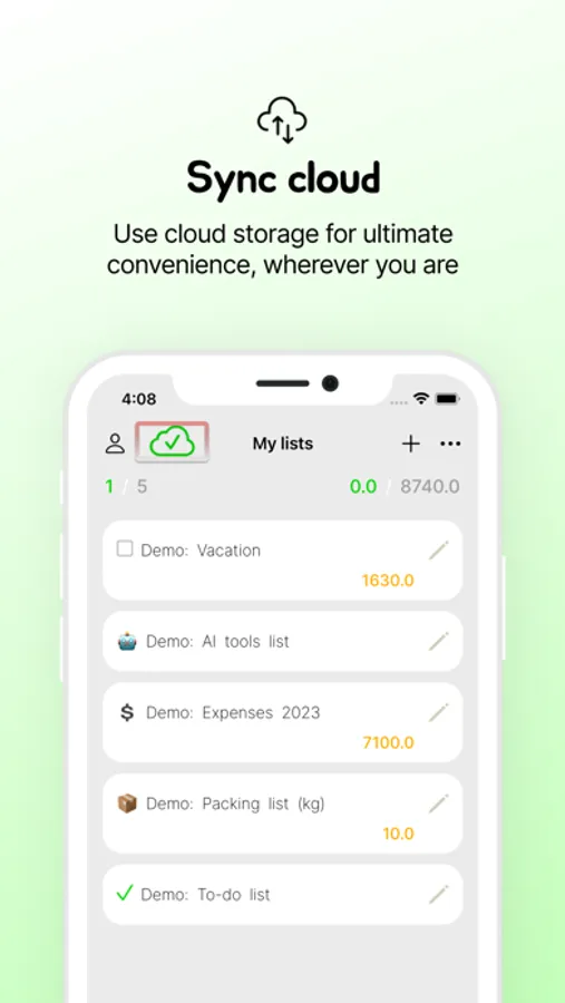 The app syncs your data with the cloud, and you can access your lists anywhere.