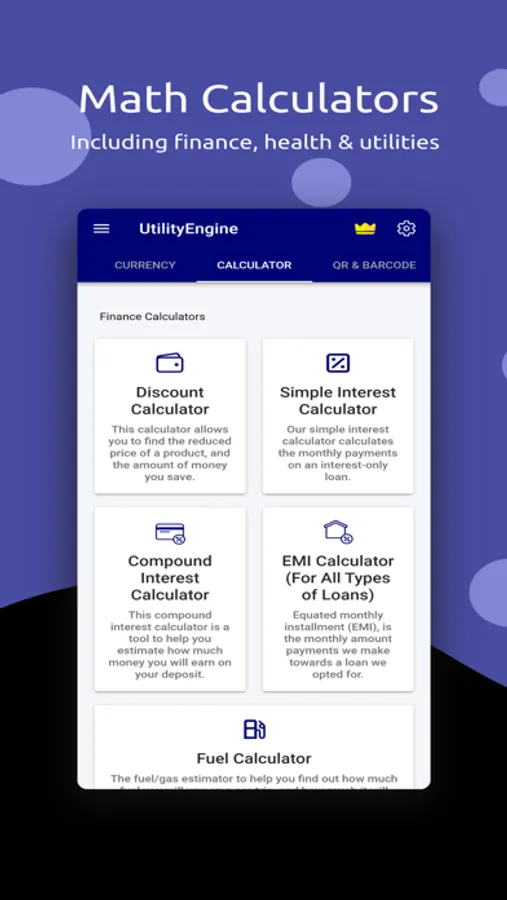 We have built UtilityEngine app so much specialised that supported all-in-one utility tools such as engineering unit converter tool, currency converter tool (live exchange rates), important finance, and health calculator tool, QR and barcode scanner tool, QR & barcode generator tool, OCR text scanner tool (optical character recognition engine), world clocks, world weather, and air pollution data live updates, daily live fuel rates which includes petrol and diesel rates (India only), daily live MCX commodity rates include gold, silver, crude oil, etc (India only), and more.