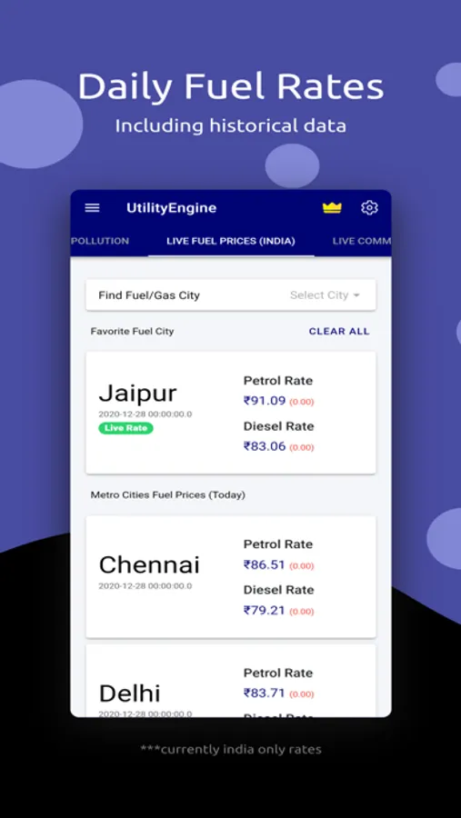 - Get daily alerts for live currency exchange rates, and fuel rates via email and push notifications.