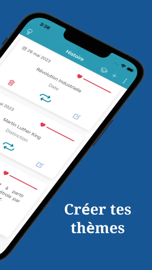 - Révise et Mémorise efficacement toutes les cartes que tu crées !