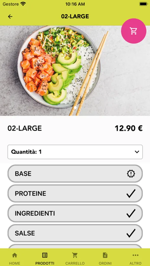 Ordinare è semplice, basta selezionare la dimensione della tua poké, scegliere la base tra riso sushi, riso venere o insalata e personalizzarla con gli ingredienti che preferisci: proteine, frutta e verdura e tante salse per il topping.