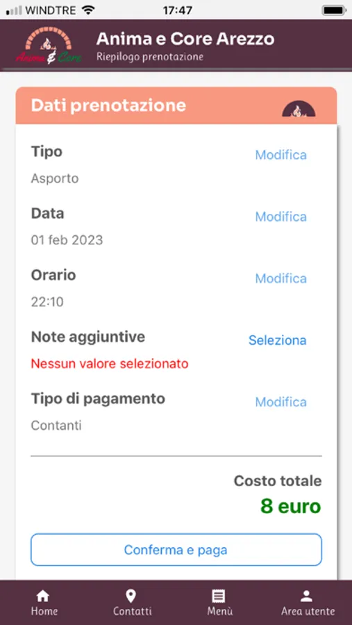 - effettuare ordini da asporto o con consegna a domicilio