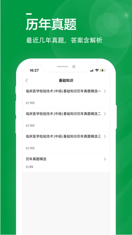 临床医学检验主管技师题库最新专注全国卫生专业技术资格考试,临床医学检验技术(中级),含基础知识、相关专业知识、专业知识、专业实践能力,每道试题附解析,为考试的提供了充分的复习准备,可随时随地学习练习,有效帮助顺利通过考试,学习知识通过考试必备神器!