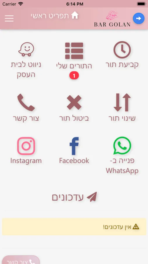 באפליקציה אפשר לקבוע תור, לנווט באמצעות Waze ולפנות אליי באמצעות WhatsApp.