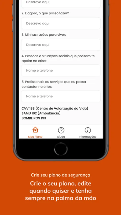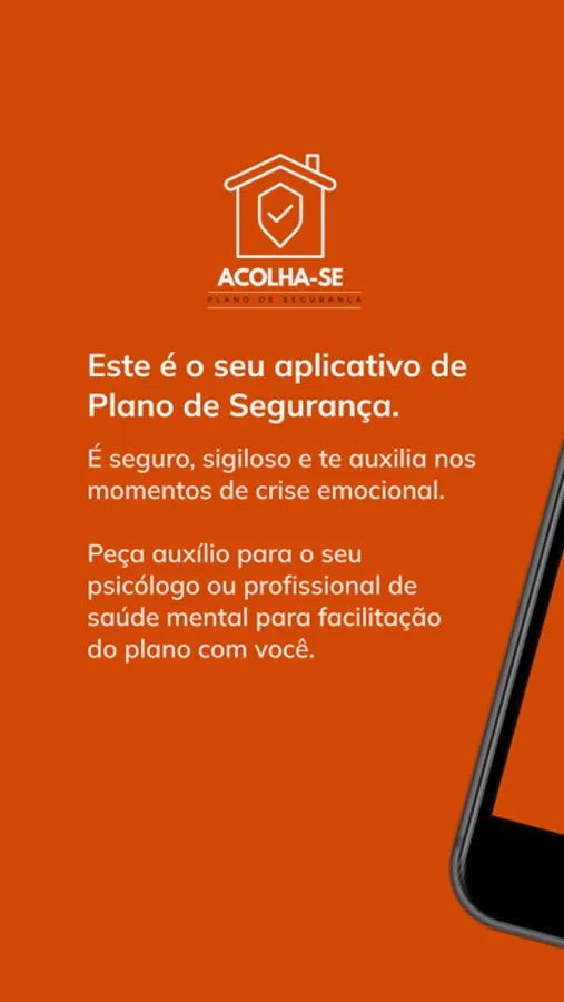 Este é o seu aplicativo de Plano de Segurança. É seguro, sigiloso e te auxilia nos momentos de crise emocional.