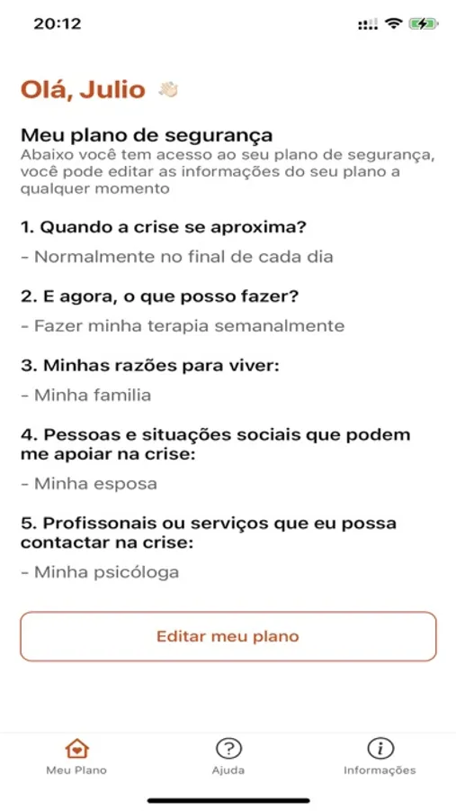 Peça auxílio para o seu psicólogo ou profissional de saúde mental para facilitação do plano com você.