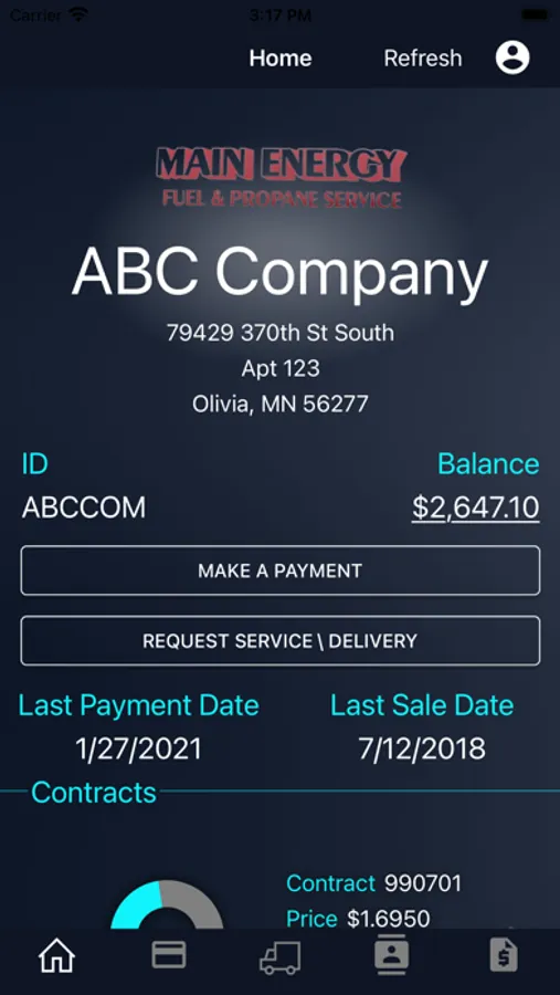 Information at your fingertips! This app gives you direct access to your account balance, location and contract information. It also gives you the ability to store and process payment and request service work and deliveries directly through the app.