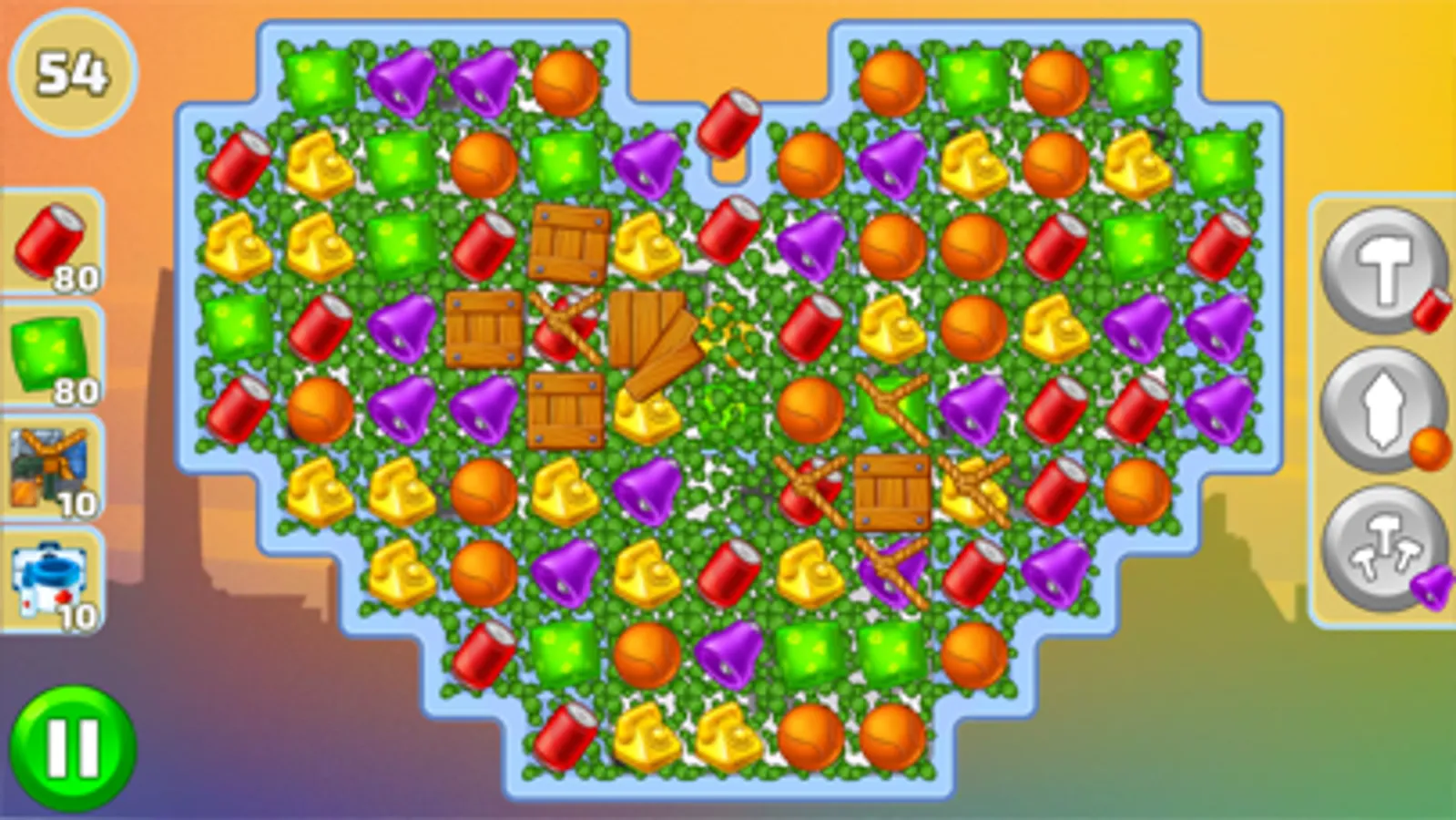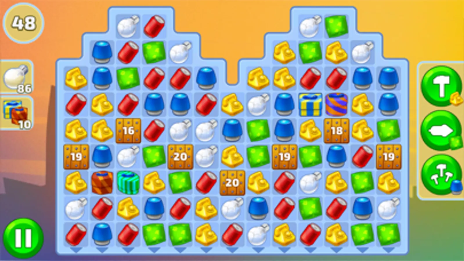 Collect items by matching similar items and breaking different obstacles on the game field.