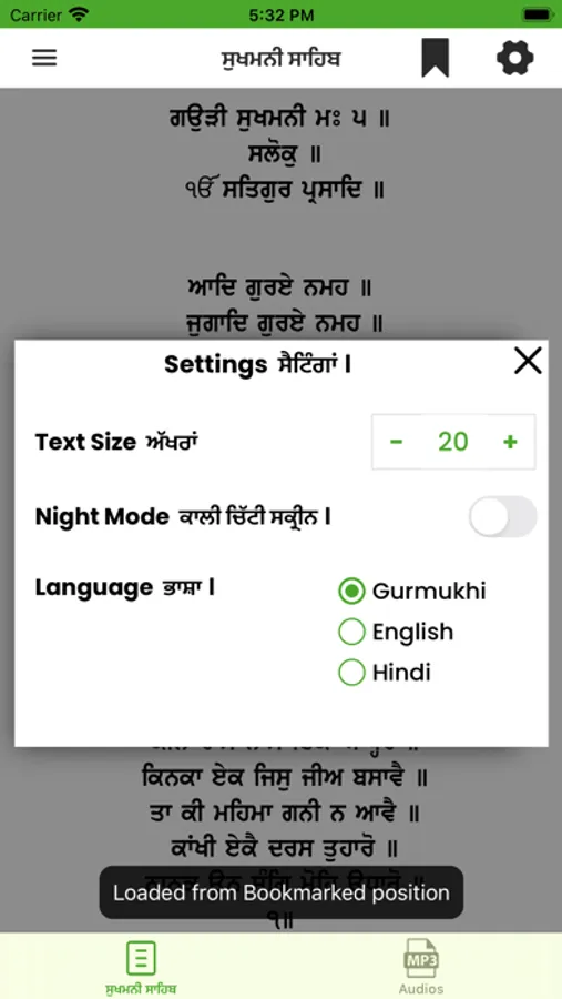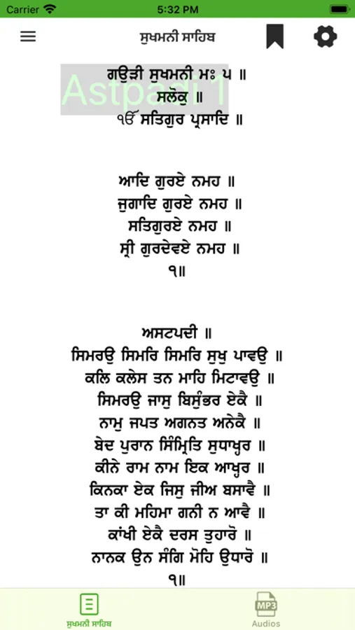 By the grace of almighty Guru: Sri Guru Arjun Dev Sahib Ji, this app let you easily read, listen, switch to specific Astpadi & bookmark bani position.