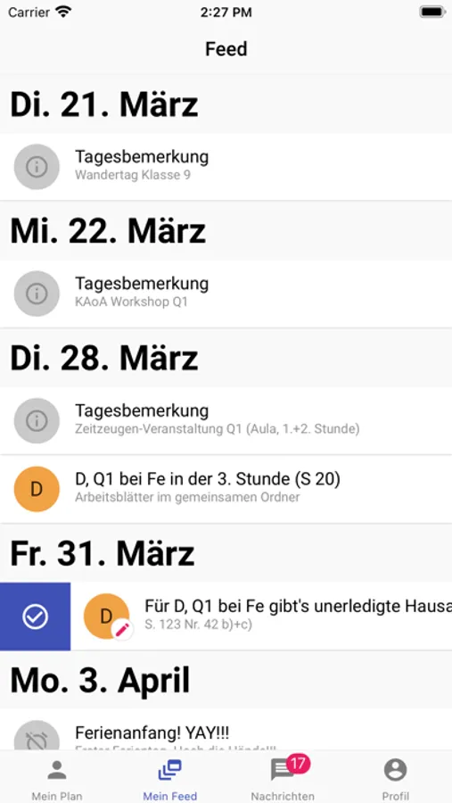 - Behalte den Überblick über deine Hausaufgaben und Fehlstunden*.