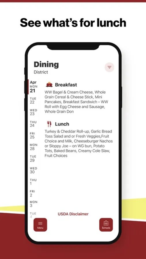 Within the dining section, you’ll find an easy to navigate, weekly menu, sorted by day and meal type.