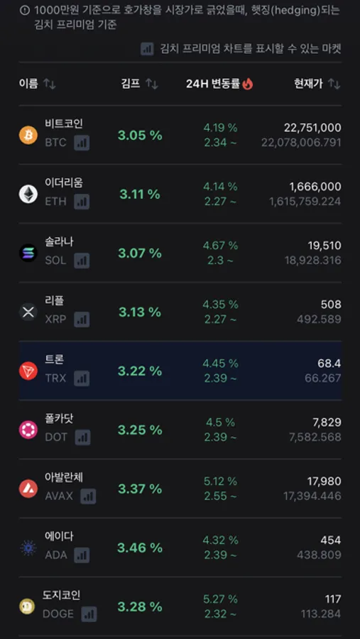 김치 프리미엄 및 실시간 차트 시세정보를 제공하는 전문 코인 커뮤니티