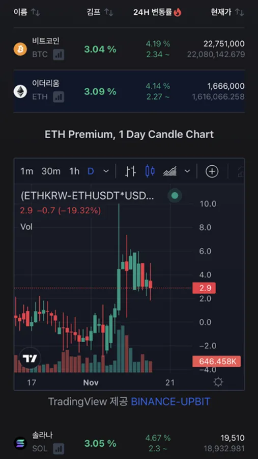SIMP - 김프, 심프, 김치 프리미엄, 김프 차트 Screenshots