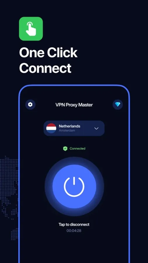 VPN Proxy Master is the best way to have a private, fast and secure internet connection. Use VPN Proxy Master to hide your online activities in public Wifi from hackers. Hide your IP address and location with VPN Proxy Master and enjoy browsing the internet with fast VPN connection. VPN Proxy Master brings you a one tap VPN connection where it only takes one tap to set up a secure and fast VPN connection.