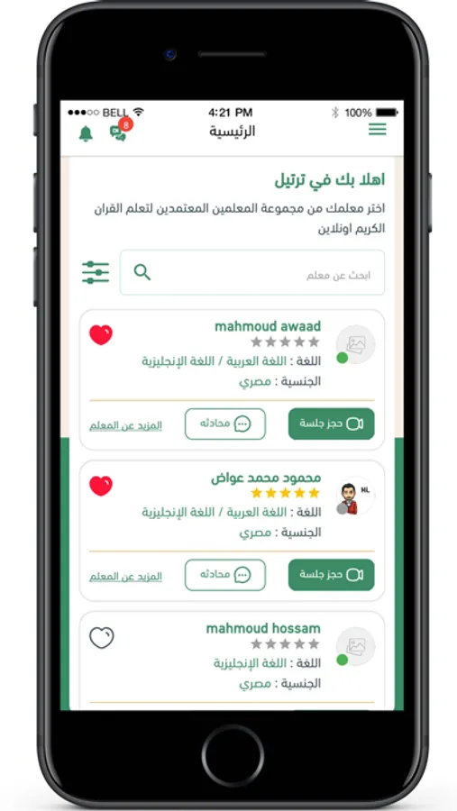 كل معلم يكون له ملف شخصي يعرض من خلاله خبراته و مؤهلاته العلمية .. مواعيد عمل متاحة لكي يستطيع الطلاب الحجز فيها .. سعر الجلسة الخاص به، كلما كان الملف دقيق كلما زادت فرص المعلم للحصول علي مزيد من الطلاب المشتركين.