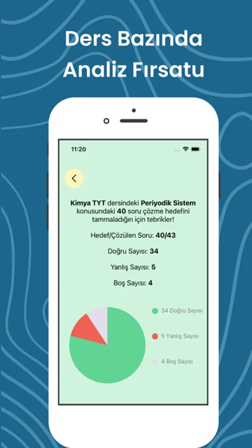 Son 7 günde ve 30 gündeki toplam çözdüğün sorular, son 7 gündeki doğru, yanış, boş sayılarını görebilirsin.