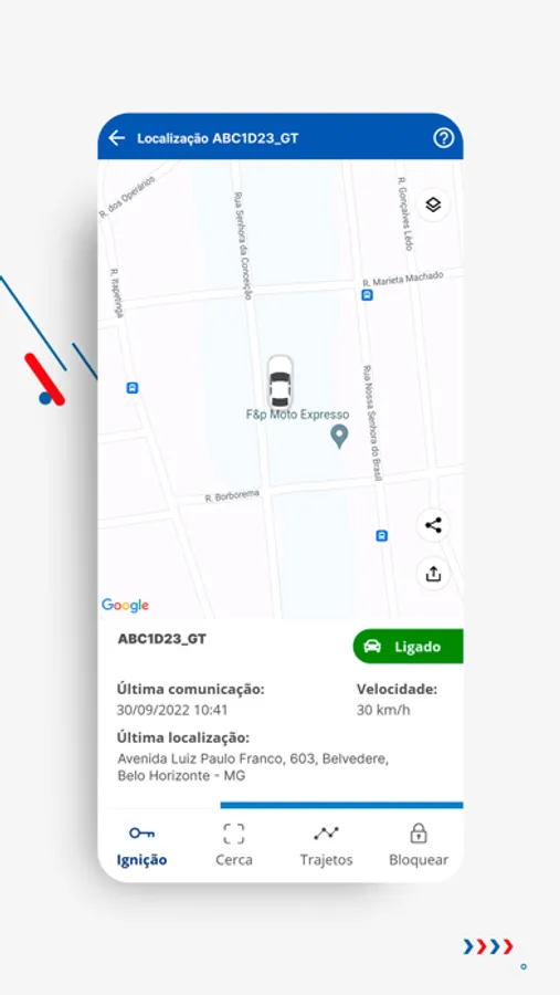 Com o app Alvo GT, você pode monitorar todos os veículos rastreados pela sua central, de forma atualizada. É possível configurar e habilitar ações como: alerta de ignição, alerta de cerca, ver a última localização do veículo no mapa; além de consultar o trajeto diário!