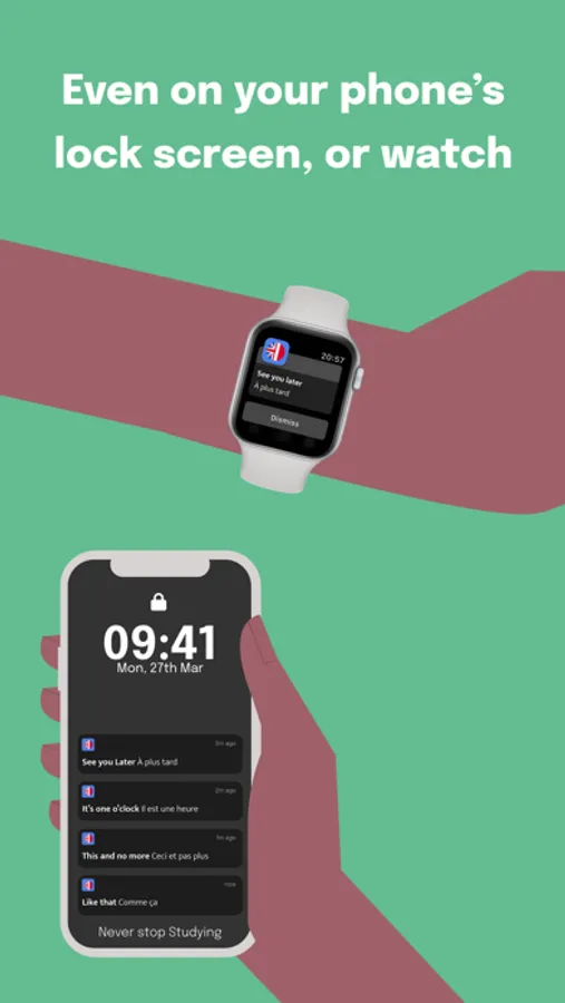 Study without even opening the app, even on your watch, with flexibly scheduled notifications