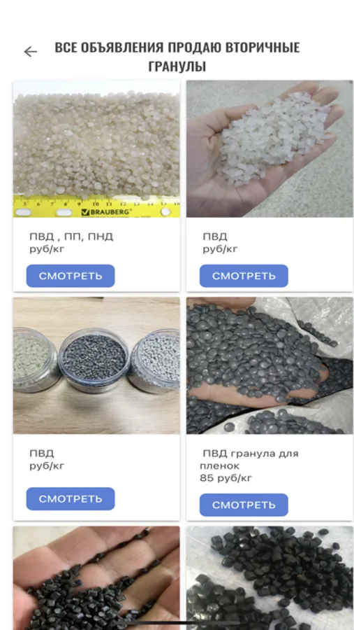VTORICHKA – мобильное приложение для продажи и покупки отходов пластика, полимерных гранул и оборудования для переработки полимеров и вторсырья.