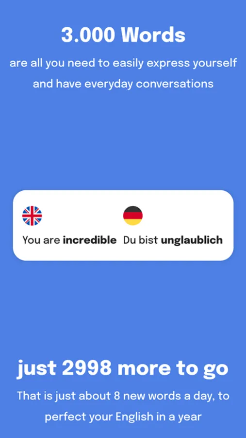 3000 words are all you need to easily express yourself and have everyday conversations in a language. This app has all the most common German ones, always available on your phone, even while offline.