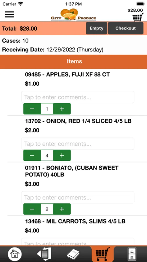 Want to place your produce orders anytime, anywhere? City Produce now has an App for that! We're taking online ordering to a whole new level. Gain access to your company's product profile, pricing, order history, and don't forget order placement, too! Convenience, functionality, and freedom are at your fingertips. Don't delay; PRODUCE your order with the City Produce Mobile Ordering App today! If you are a City Produce (Florida or Alabama) customer and would like to have access to our ordering system, please contact your sales representative.