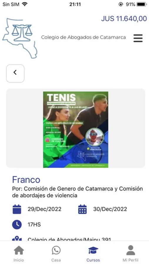 Sign up for the courses of the Catamarca Bar Association through the app. You can also register if you are a new user.