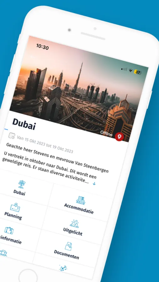 Alle info vanaf nu binnen handbereik met onze eigen 'Blauwe Vogel' app. Nooit meer zoeken naar je geprinte documenten of mails.