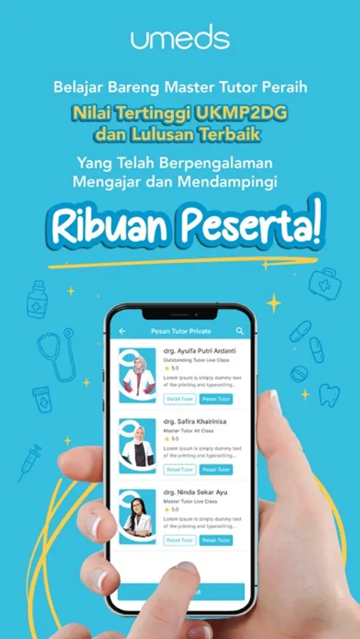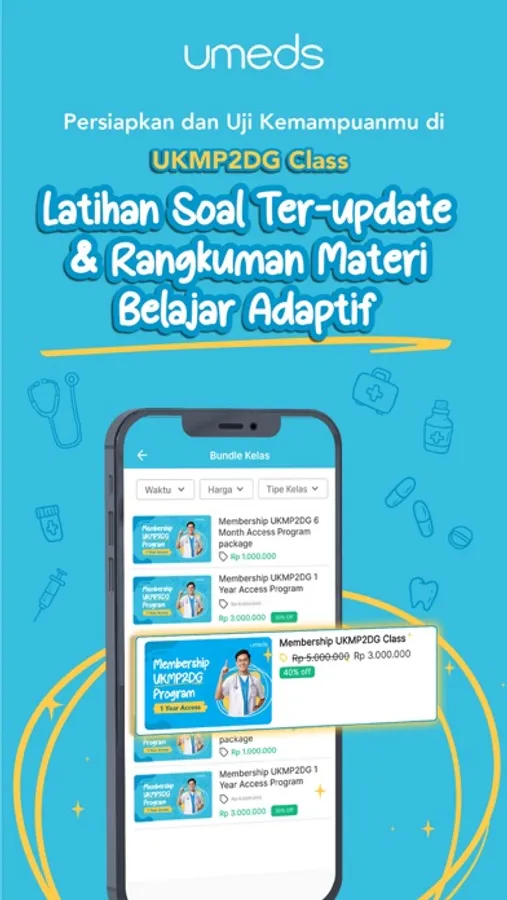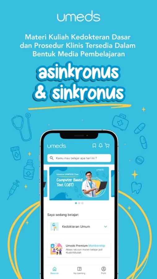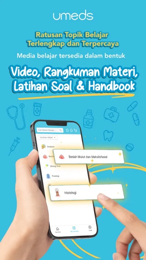 Umeds is a supportive learning platform for medical and dental students in Indonesia with a combination of asynchronous and synchronous learning methods. Students can access the most trusted and completed content of medical education materials with several main features such as online live class with interactive tutors, library learning, video learning with 2D animation, question bank and also handbook module illustration.