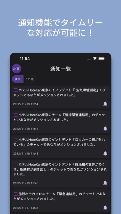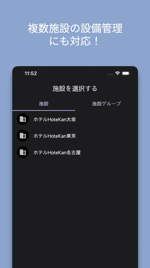 ホテルなどの施設の設備管理のための専用アプリです。