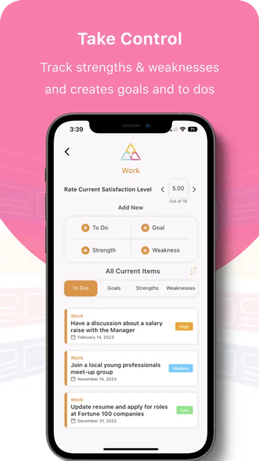 Reflection allows you to reflect upon and track various facets of your life to make sure you live a more balanced and intentional life. Evaluate life across various categories such as work, money, relationships, play, health, mind, learning and more. Identify core Strengths and Weaknesses in each category. Then craft desired long-term Goals, supported by short-term To Dos. Stay on top of your To Dos with reminders and see your life change with each completed task.